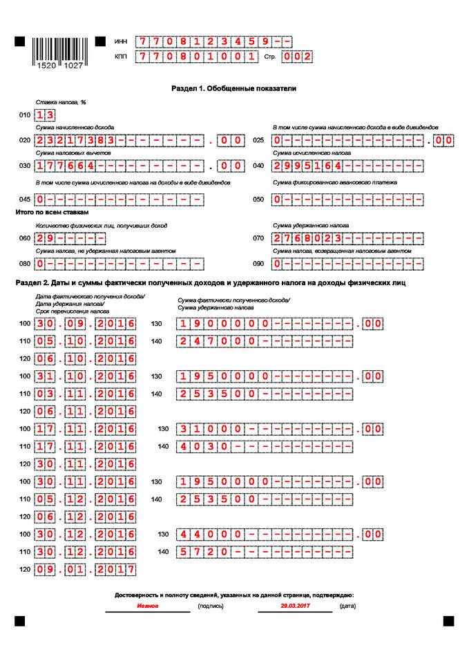 - Строка 010: Ставка налога (13%, 15% и др.)